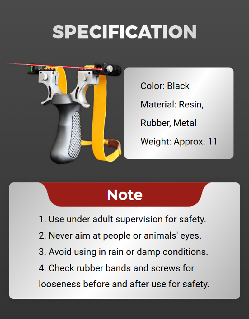 The Professional Resin Laser Slingshot is engineered for accuracy, power, and durability, making it the ultimate tool for hunting, target practice, or recreational use.
