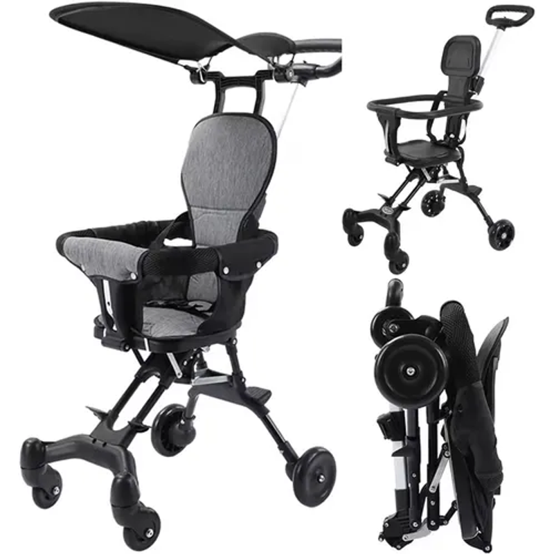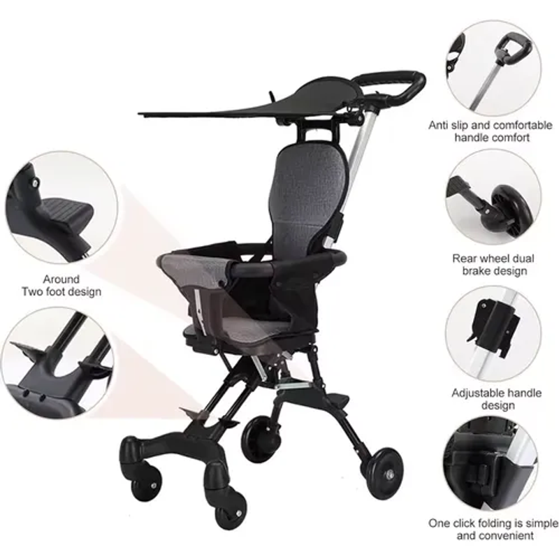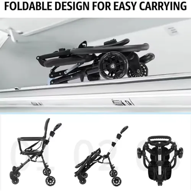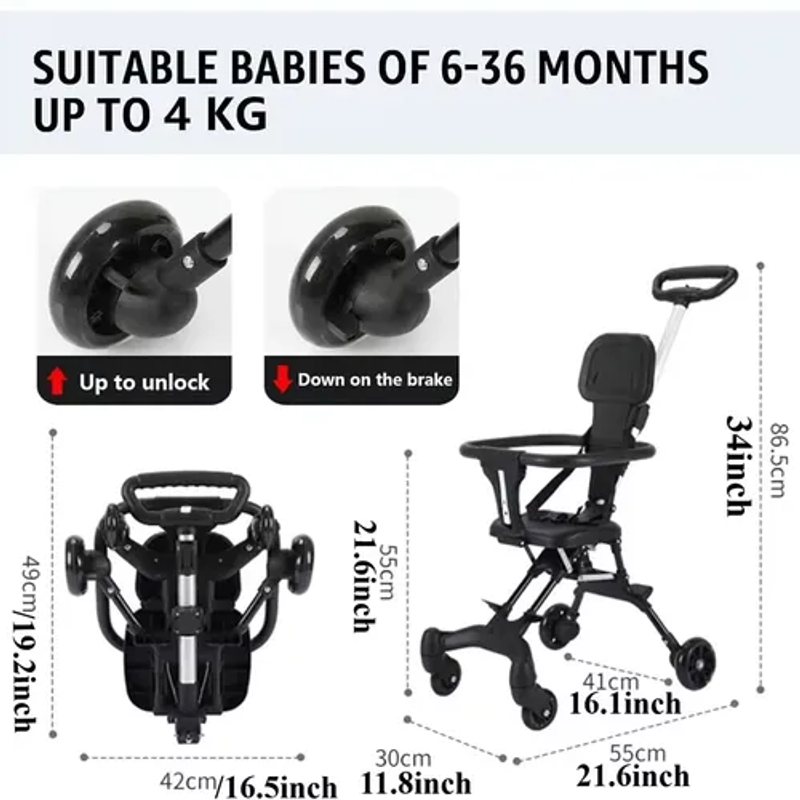 🛵 [Compact and Travel-Friendly]: Baby stroller. This lightweight stroller weighs only 4 kg and folds to a size of 49 x 42 cm. You can easily store it in your car bag or take it on airplanes while traveling. Additionally, the additional pull bar allows mothers to easily carry the lightweight stroller anywhere.